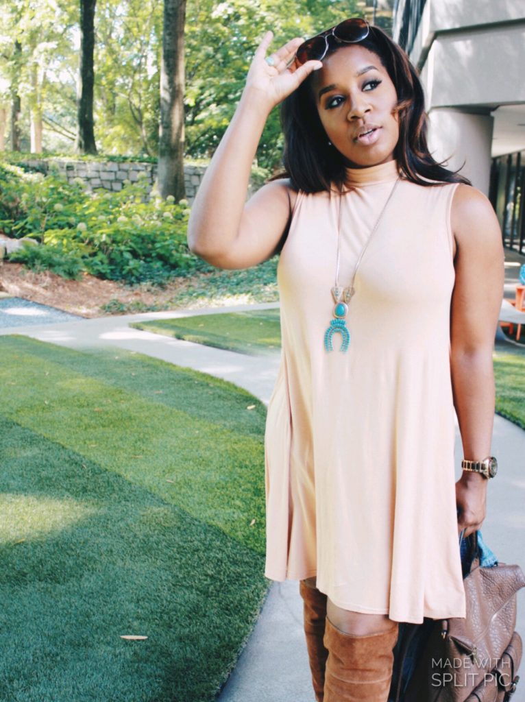 So Fall is coming and I’m not sure how I feel about it. Don’t get me wrong, I love the changing color of the leaves and all the holidays that new seasons in the second half of the year bring, BUT the absence of warm weather? Not so much. Right now it’s tough in the South transitioning into the Fall weather simply because the temps fluctuate, unpredictably so. This little outfit is me masterminding the transition.