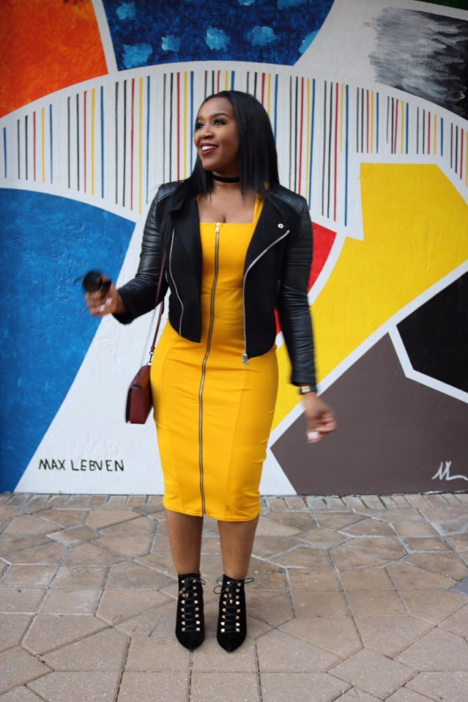 The main number is a yellow pencil dress with a good bit of give to stretch over my curves. As always, I drop the deets on where to get it below. I offset this look with Coach’s Pre-Spring 2017 Dinky crossbody bag and a matching bordeaux lip shade. Yum!!